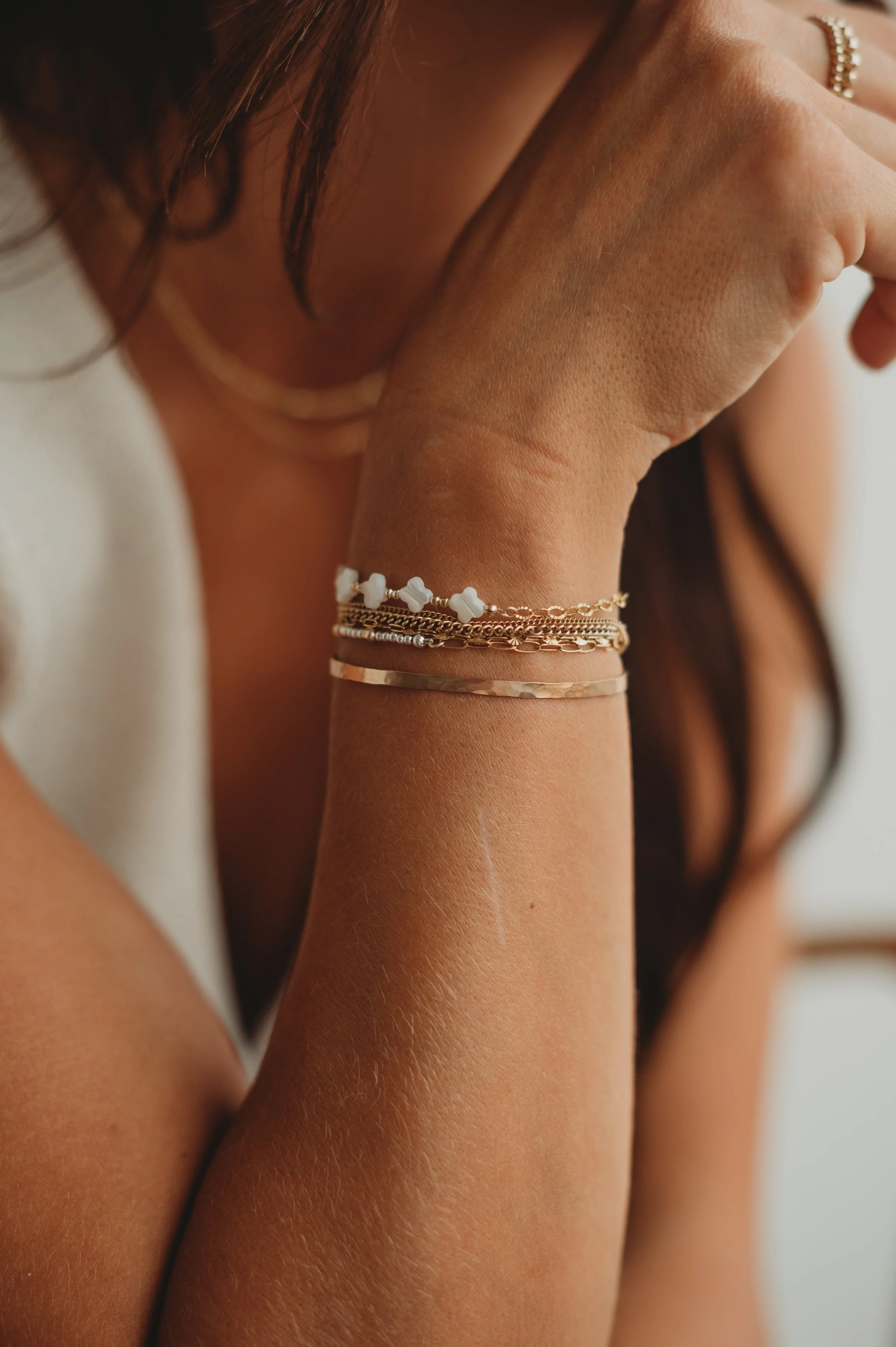 We also carry styles you won’t find just anywhere. Beyond basic chains, we offer bangles, rangles (a bangle for your finger), and beaded glow-ups (half chain, half beaded - totally addictive) for anyone looking for something a little more unique.
